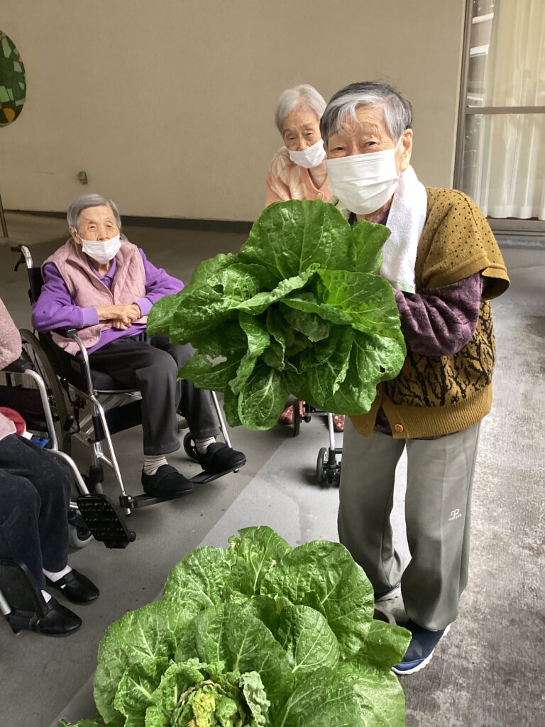 投稿公開日:2026年03月02日(月) ●2階フロアのホームガーデンで白菜を収穫しました。 11月頃より種植えし、水やりなど利用者様と行いながら育ててきました。 立派な白菜を収穫でき一緒に喜びました。 その他の記事を読む 前の投稿雛飾り作り(2階フロア)
